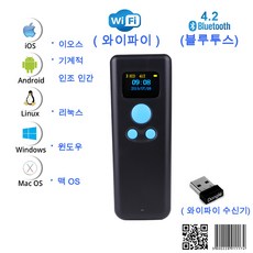 여요 블루투스 2D 1D 바코드 스캐너 휴대용 무선 미니 바코드 리더기 2.4G 무선/블루투스/USB 유선 연결 QR 코드 스캐너 패드 안드로이드 태블릿 PC와 호환, YH1702, 1개, 01 yh1702