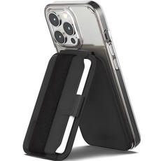 신지모루 맥세이프 호환 그립 스트랩 휴대폰 카드지갑, 블랙, 1개