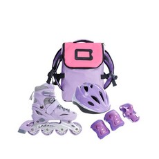 휠러스 아동용 에이스2 인라인스케이트 + 가방 + 보호대 + 헬멧 콤보 세트, 퍼플, 1세트