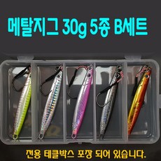 반짝이 메탈지그 30g 5종 세트[태클박스포함] 바다낚시 하드베이트 미노우 루어 낚시 광어 우럭 삼치 농어 갈치 크롬 어시스트, 반짝이 메탈지그 30g 5종 B세트, 1개