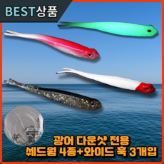 입질의순간 광어 다운샷 채비 쉐드웜 5인치 웜 와이드 훅 3개입 세트구성, 1세트, 8g, 4종