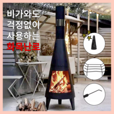 모닥 워터프리 불멍 화목난로 캠핑 화롯대 벽난로 소각 주물 히터 장작 야외, 120cm, 1세트, 블랙
