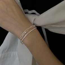 실버 큐빅 슬림 체인 여성 패션 팔찌 J1673