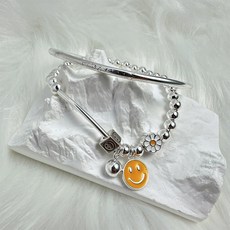 오누이디스플레이 순은 스마일 플라워 은볼 데일리 레이어드 팔찌세트 W63