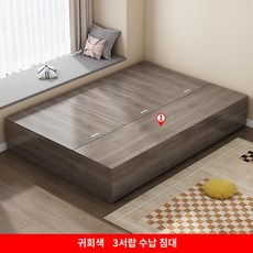 침대 등받이 수납함 홍콩 민박집, 1350mm*1900mm, 그레이침대-가방설치
