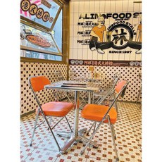 동남아 레스토랑 테이블 스테인레스 스틸 테이블과 의자레트로 카페용 테이블, 상세 페이지 참고, 접이식 의자(주황색)