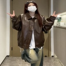 홍콩 맛chi해피유통 여성 레더 야구복 숏 박시 캐주얼 가죽 점퍼