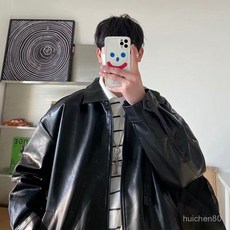 YAPOCL 남성 봄과 가을 미국 복고풍 가죽 의류 홍콩 스타일 오토바이 가죽 자켓