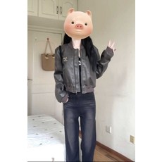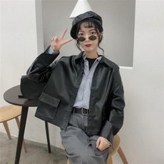 자켓 레더 여성 가을 가죽 가 홍콩 하이