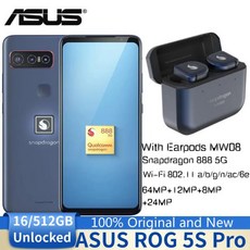ASUS ROG 5S 프로 ZS675KW I007D 5G 스마트폰 16GB 512GB 6.78 인치 64MP 스냅드래곤 888 게이밍 폰, 한개옵션1, 01 파란