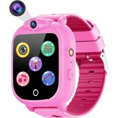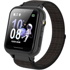 키즈 스마트 워치 여아 소년 14 게임 음악 카메라 캘린더 기록 만보계 스톱워치 커스텀 벽지 알람 시계 손전등 12/24시간 키즈 장난감 선물, Black