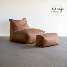 클로엣지 대형 가죽 빈백소파 스툴 세트, 브라운