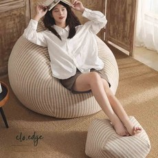 클로엣지 패브릭 스트라이프 빈티지 대형 빈백 소파, 베이지브라운
