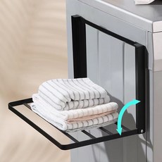 ZOZOFO 세탁기 냉장고 사이드 무타공 접이식 철제 자석 선반, 블랙, 1개
