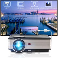 영화 프로젝터 실내 실외용 1080P HD 6500루멘 TV 스틱 노트북 PC PS5 HDMI USB VGA와 호환되는 홈 시어터 비디오 LCD LED 10W 스피커 내장 천장, Video Projector-6500 Lumen